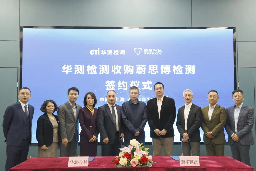 Recently, Centre Testing International Co., Ltd. (CTI Group), a pioneer and leader in China's third-party testing and certification industry, and Spirox Technology Co., Ltd. signed the "Equity Transfer Agreement on VESP Technology (Hefei) Co., Ltd." at CTI Shanghai office. According to the agreement and the equity transfer agreement signed by CTI and other shareholders of VESP Technology (Hefei) Co., Ltd. on December 29, 2022, the 100% equity transfer of VESP has completed, and VESP officially became a wholly-owned subsidiary of CTI. Wan Feng, Chairman of CTI Testing Group, Shentu Xianzhong, President, Tian Qi, President of Consumer Products Division, Chen Qian, Chief Executive Officer of Dongfang District, Wu Yuejun, General Manager of Investment Department, Su Hongwei, General Manager of Consumer Products Central Laboratory, and Vice Chairman of Spirox Technology Qin Jiaqi, Lin Zhengde, general manager of VESP, Chen Weizheng, deputy general manager of the Marketing Department, and Zheng Yiming, deputy general manager of the Engineering Department, attended the signing ceremony.