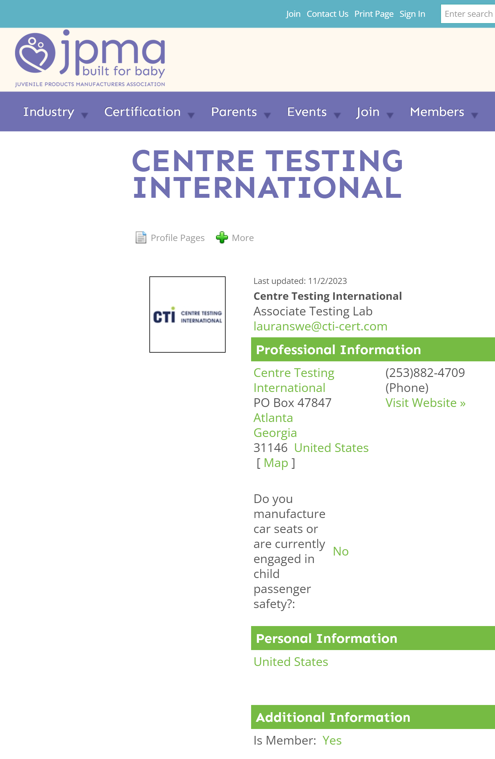 Centre Testing International Group (CTI), is proud to announce that we are now an Associate Member with the Juvenile Products Manufacturers Association (JPMA)!