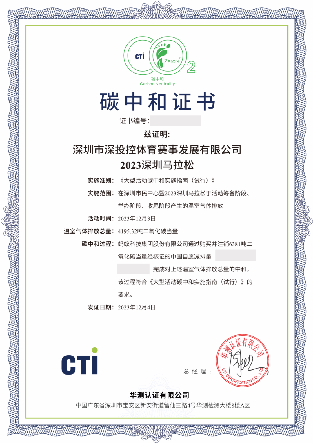 On December 3, the Shenzhen Marathon 2023 started at Civic Center. 20,000 runners from more than 30 countries and regions, crossed four areas, and finally arrived at Waterfront Cultural Park in Baoan. As a public welfare partner of the Shenzhen Marathon, CTI Certification provided Carbon Verification and Carbon Neutral services for this event.