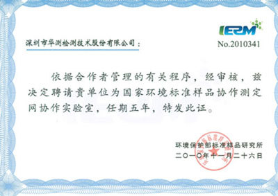 近日,CTI華測檢測獲得環(huán)境保護(hù)部標(biāo)準(zhǔn)樣品研究所(IERM)頒發(fā)的“國家環(huán)境標(biāo)準(zhǔn)樣品協(xié)作測定實驗室”的牌匾和證書,代表了CTI華測檢測實驗室的檢測結(jié)果可以作為標(biāo)準(zhǔn)量值溯源即國內(nèi)環(huán)境檢測行業(yè)中最高的檢測技術(shù)水平。