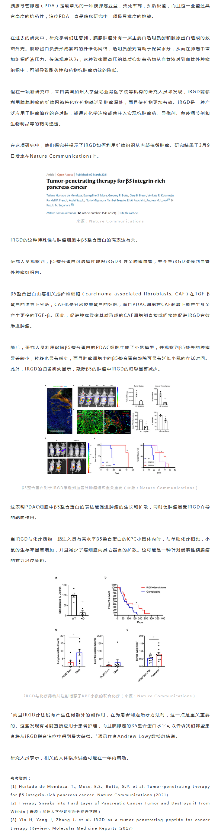 抗擊胰腺癌新療法!穿透肽“運(yùn)輸”化療藥物深入腫瘤內(nèi)部,小鼠生存率顯著提升| Nature子刊