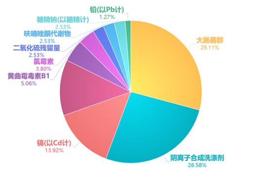 2月國內(nèi)抽檢共涉及食品批次12116批,其中餐飲食品抽檢860批,不合格79批,餐飲食品不合格率為9.2%,不合格項(xiàng)目及產(chǎn)品種類匯總?cè)缦滤?,詳?xì)抽檢信息匯總可聯(lián)系業(yè)務(wù)人員獲取。