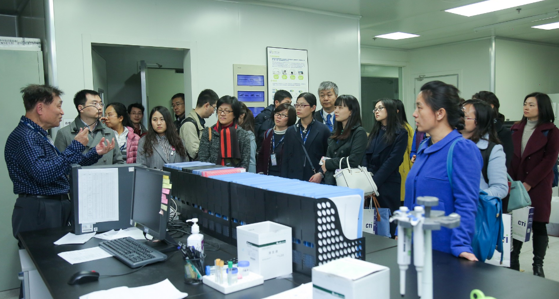 參會(huì)學(xué)員參觀華測(cè)艾普功能醫(yī)學(xué)及基因檢測(cè)實(shí)驗(yàn)室