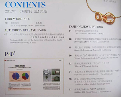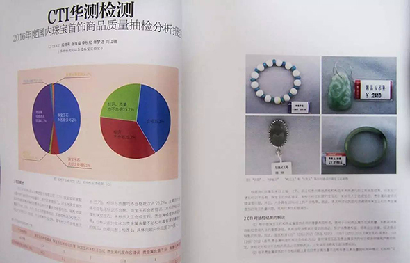 日前,國(guó)內(nèi)珠寶行業(yè)核心期刊《中國(guó)寶玉石》雜志頭版刊發(fā)了CTI珠寶實(shí)驗(yàn)室發(fā)布的《2016年度國(guó)內(nèi)珠寶首飾商品質(zhì)量抽檢分析報(bào)告》。