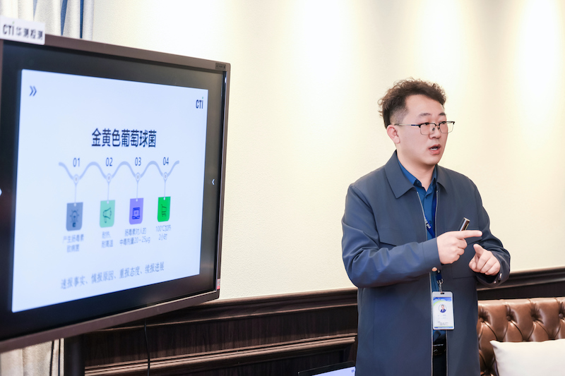 會(huì)場一下半場主講嘉賓華測FACH管理培訓(xùn)中心餐飲與模擬演練項(xiàng)目總監(jiān)、BRCGS全球食品安全標(biāo)準(zhǔn)主任審核員閆偉強(qiáng)老師。閆老師與現(xiàn)場嘉賓就“食品生產(chǎn)經(jīng)營企業(yè)輿情處置應(yīng)急演練”為題進(jìn)行分享。圓桌論壇同時(shí)邀請(qǐng)華測FACH管理培訓(xùn)中心技術(shù)研發(fā)總監(jiān)魏金強(qiáng)老師,就輿情處置和應(yīng)急演練與參會(huì)企業(yè)高管進(jìn)行深入探討。