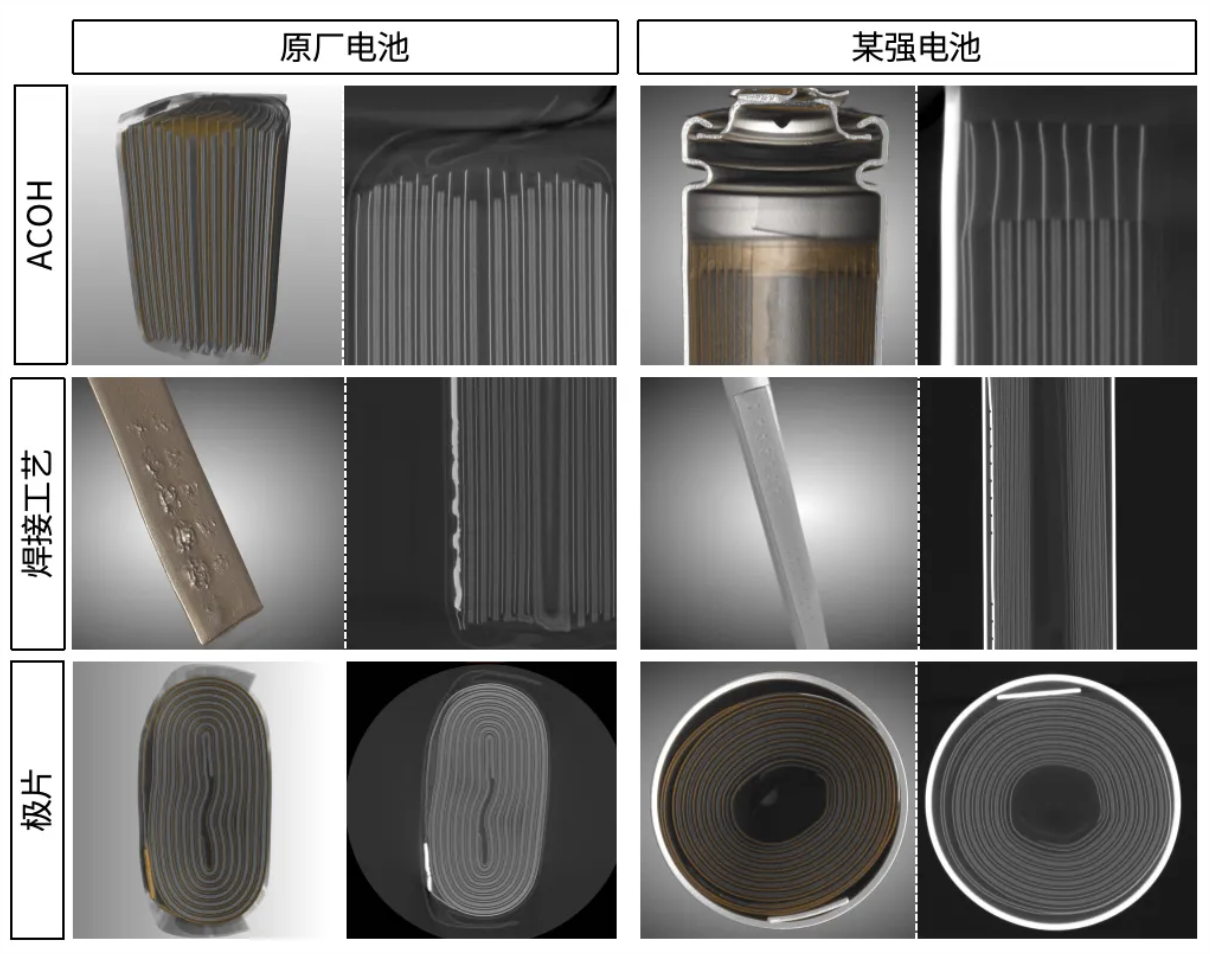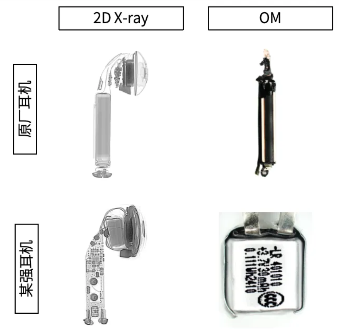 CTI華測(cè)檢測(cè)實(shí)驗(yàn)室通過(guò)OM、2D X-Ray及3D X-Ray(Zeiss Xradia 630 Versa)對(duì)比原廠(chǎng)vs"某強(qiáng)"耳機(jī)電池,微觀(guān)結(jié)構(gòu)差異直接關(guān)聯(lián)續(xù)航與安全,工藝缺陷往往是隱患的源頭,不容忽視。