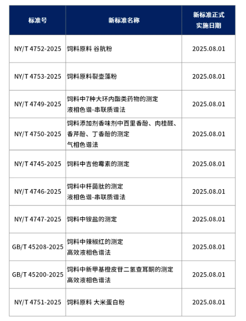 以下5項(xiàng)飼料標(biāo)準(zhǔn)自8月1日起舊標(biāo)準(zhǔn)廢止,實(shí)施新標(biāo)準(zhǔn)