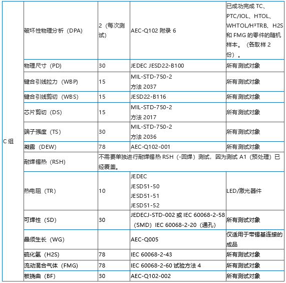 根據(jù)產(chǎn)品規(guī)格書中和AEC-Q102中電氣性能要求 |