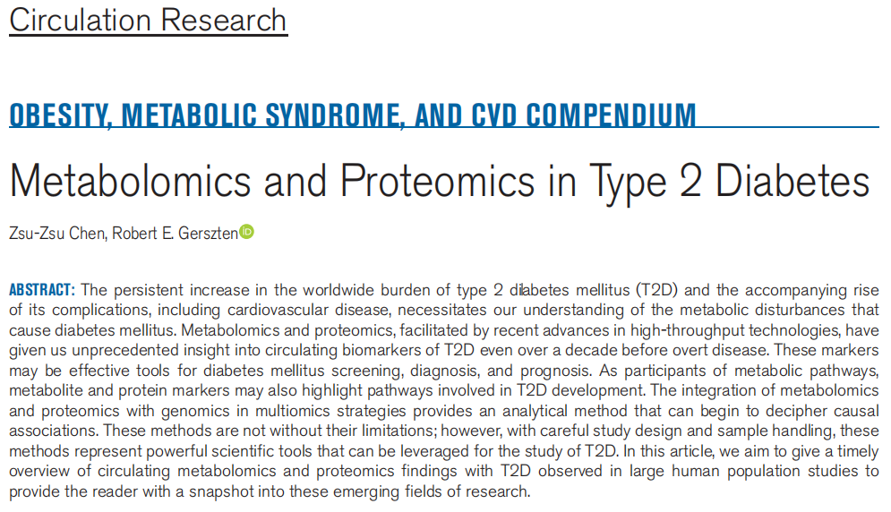 隨著世界范圍內(nèi)II型糖尿病(T2D)負(fù)擔(dān)的持續(xù)增加及其并發(fā)癥(包括心血管疾病)的增加,我們有必要了解導(dǎo)致糖尿病的代謝紊亂。新型代謝組學(xué)和蛋白質(zhì)組學(xué),在高通量技術(shù)的最新進(jìn)展的推動下,使我們對T2D的循環(huán)生物標(biāo)志物有了前所未有的洞察力,這些標(biāo)記物可能是糖尿病篩查、診斷和預(yù)后的有效工具。