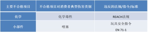 表3:2016年第三季度歐盟(中國制造)通報(bào)的玩具產(chǎn)品的不合格詳情