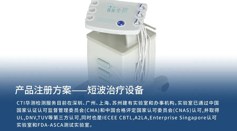 CTI華測檢測醫(yī)療器械實(shí)驗(yàn)室目前已經(jīng)獲得了以上測試標(biāo)準(zhǔn)的CNAS、CMA授權(quán),測試項(xiàng)目包括醫(yī)療器械電氣安全、EMC、專標(biāo)測試、生物相容性測試、清洗消毒滅菌驗(yàn)證、包裝運(yùn)輸驗(yàn)證、軟件測試等,可以為醫(yī)療器械生產(chǎn)企業(yè)提供【短波治療設(shè)備】全球市場準(zhǔn)入的一站式注冊檢測服務(wù)方案。