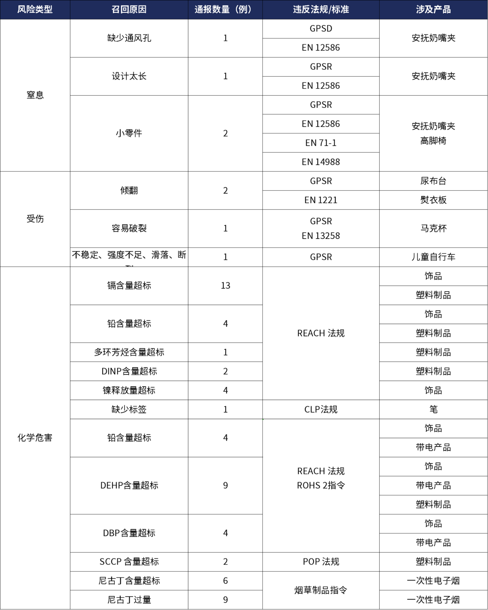 2025年4月,歐盟Rapex系統共召回43例消費品(除玩具、電器及紡織品),3例產自尼泊爾,產地為英國、巴基斯坦和意大利各2例,產地為波蘭、印度、法國、阿拉伯均有1例,其余產自中國。1例鉛筆袋產品由于鄰苯增塑劑(DEHP)、鎘和短鏈氯化石蠟超標,不符合REACH合規(guī)和POP法規(guī)被召回。