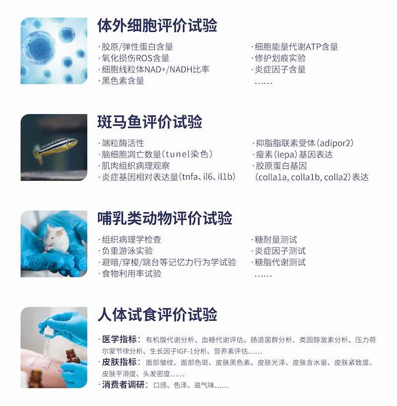 由于免疫力是免疫系統(tǒng)綜合決定的能力,因此在產(chǎn)品功能研究驗證過程中需要多角度的證明,免疫力小鼠試驗通常包含細胞免疫功能、體液免疫功能、單核-巨噬細胞功能、NK細胞活性四個方面的驗證試驗。企業(yè)可采用真實試驗數(shù)據(jù)解決免疫力產(chǎn)品功能驗證的難題,可參考的免疫力類相關(guān)試驗如下: