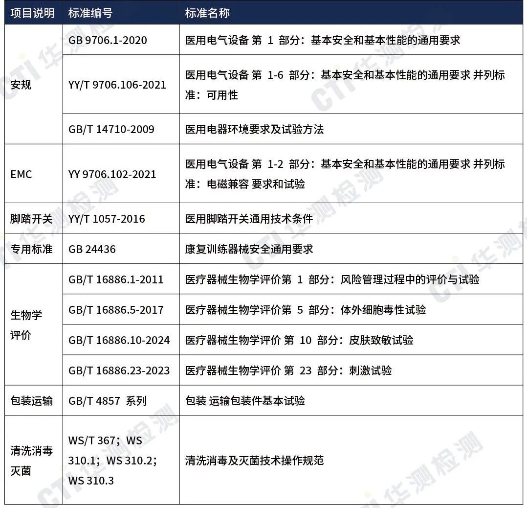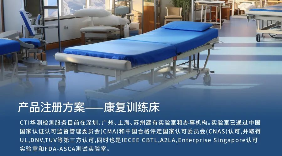 CTI華測檢測醫(yī)療器械實驗室目前已經(jīng)獲得了以上測試標(biāo)準的CNAS、CMA授權(quán),測試項目包括醫(yī)療器械電氣安全、EMC、生物相容性測試、清洗消毒滅菌驗證、包裝運輸及老化實驗等,可以為醫(yī)療器械生產(chǎn)企業(yè)提供【康復(fù)訓(xùn)練床】全球市場準入的一站式注冊檢測服務(wù)方案。