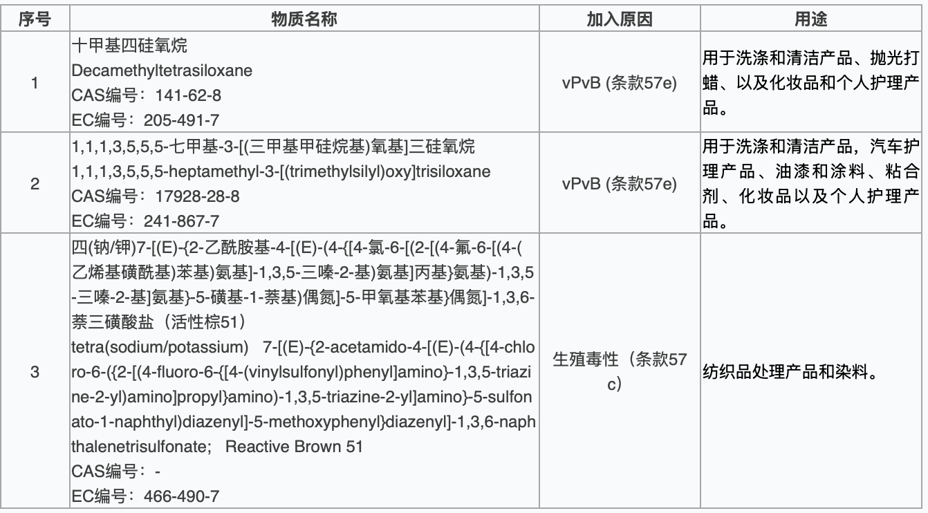 新加入的3項(xiàng)SVHC物質(zhì)如下: