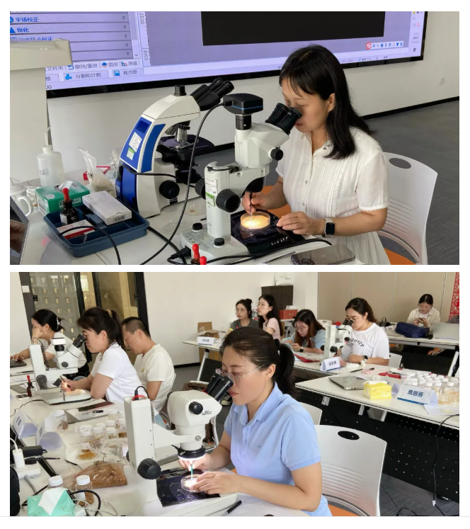 2.技術(shù)比武“驗(yàn)真金”:33名學(xué)員分成六組,參與兩種考核形式的比拼。第一種“定向識(shí)別”,由老師指定某種摻假成分,學(xué)員需迅速找出對(duì)應(yīng)的摻假樣品。第二種形式為“盲樣分析”,學(xué)員憑借所學(xué)技能對(duì)盲樣進(jìn)行分析,鑒別其摻假情況。這一環(huán)節(jié)不僅檢驗(yàn)學(xué)習(xí)成果,更模擬了工作場(chǎng)景下的實(shí)戰(zhàn)鑒別能力,現(xiàn)場(chǎng)競(jìng)技氛圍濃厚。