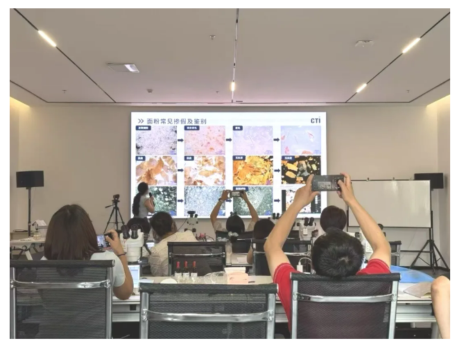 3.解密面粉原料:鞠魯宇老師解析面粉的鏡下形態(tài)特征、常見(jiàn)摻假物,并重點(diǎn)指導(dǎo)學(xué)員運(yùn)用生物顯微鏡進(jìn)行淀粉形態(tài)分析,提升植物原料的鑒別能力。