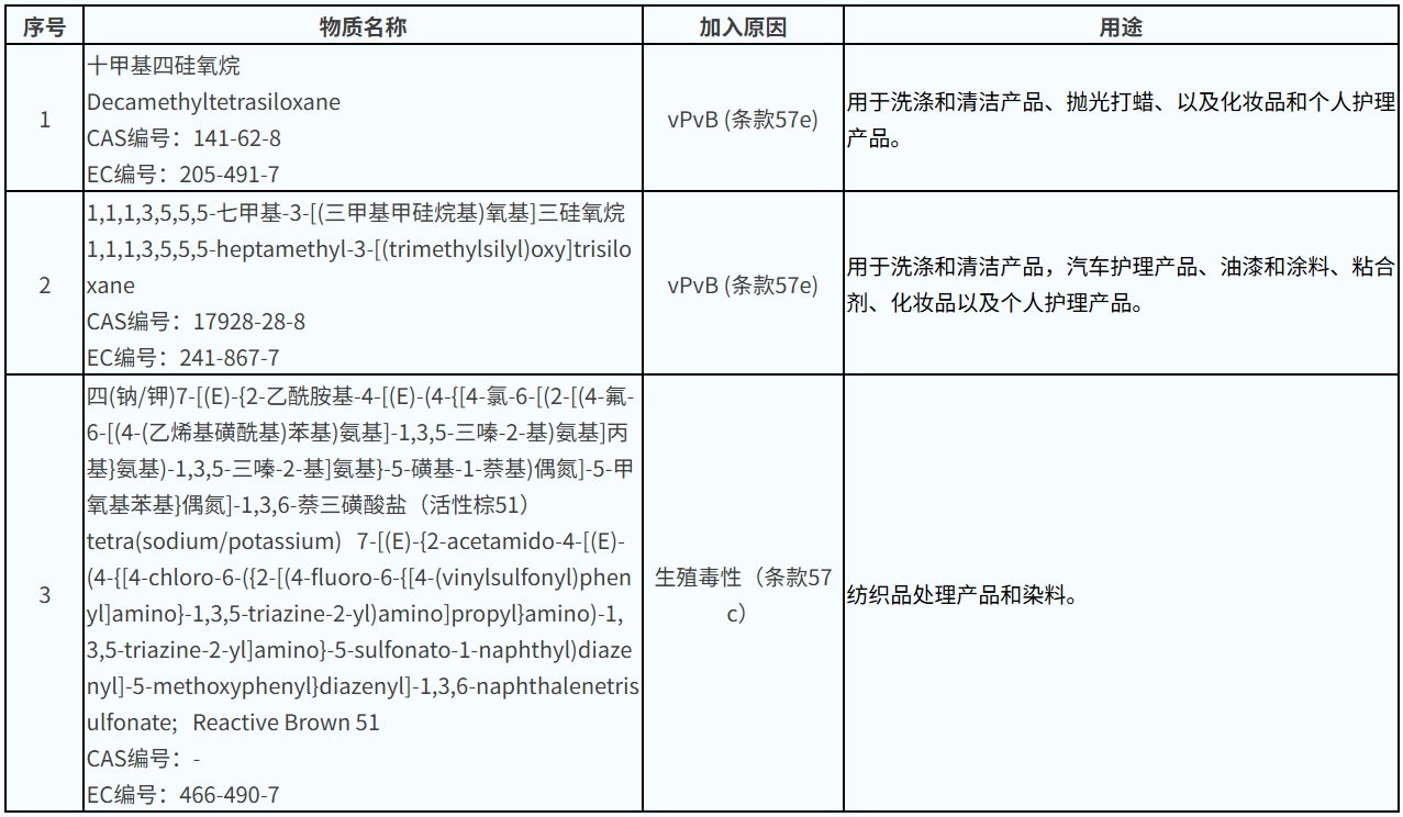 2025年6月16日,歐洲化學品管理局(ECHA)在其官網(wǎng)發(fā)布消息稱ECHA成員國委員會(MSC)在6月的會議上已經(jīng)確定將3項SVHC評議物質(zhì)(2025年2月28日展開公眾評議)加入SVHC候選物質(zhì)清單,并將在本月晚些時候正式更新物質(zhì)清單。屆時,SVHC候選清單將包括33批250項物質(zhì)。