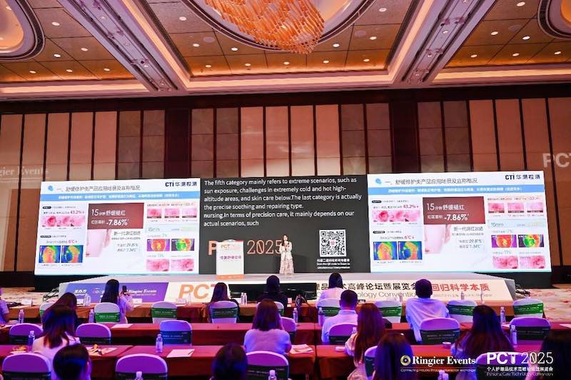 在PCT 2025個(gè)人護(hù)理品技術(shù)高峰論壇上,CTI華測檢測化妝品功效評(píng)估中心技術(shù)經(jīng)理陳映格老師帶來了一場題為《基于人體皮膚損傷模型的化妝品舒緩修護(hù)功效宣稱策略與應(yīng)用研究》的精彩演講。作為修復(fù)舒緩專場的重磅內(nèi)容,該演講吸引了眾多資深業(yè)內(nèi)人士和行業(yè)專家的關(guān)注。