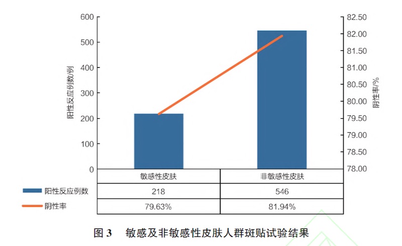 在人群差異方面,研究數(shù)據(jù)顯示非敏感性皮膚群體的陰性率(81.94%)高于敏感性皮膚群體(79.63%)。這一結(jié)果印證了敏感性皮膚由于皮膚屏障功能受損,更容易對(duì)化妝品成分產(chǎn)生反應(yīng)的臨床觀察結(jié)果。值得注意的是,盡管數(shù)據(jù)差異看似不大,但考慮到測(cè)試樣品多為宣稱(chēng)適用于敏感肌的產(chǎn)品,其本身就具有相對(duì)溫和的配方設(shè)計(jì),所以實(shí)際差異很可能被低估,這提示針對(duì)敏感肌產(chǎn)品的安全性評(píng)估需要更加審慎。