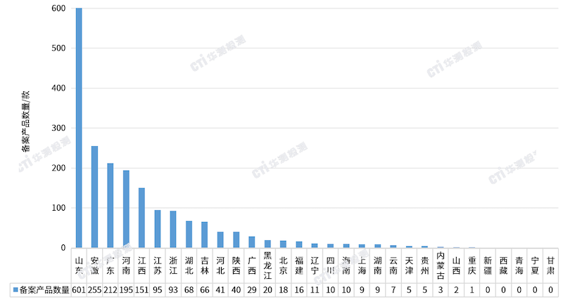 圖1.2025上半年全國(guó)備案產(chǎn)品數(shù)量統(tǒng)計(jì)分析