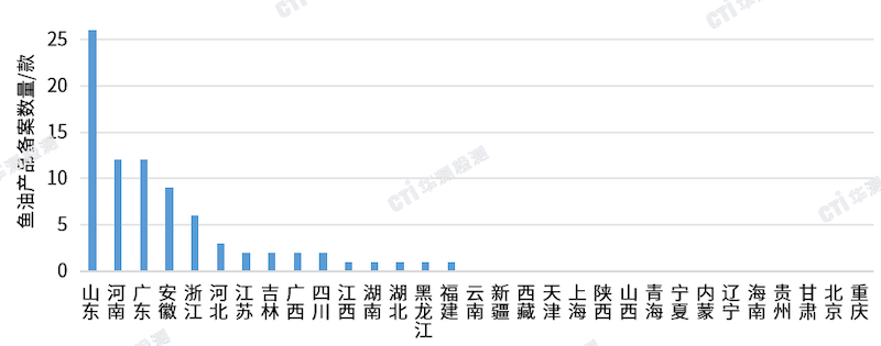 如圖8所示,2025上半年魚(yú)油備案產(chǎn)品共81款,備案數(shù)量排名前三依次是山東省(26款)、河南省(12款)、廣東省(12款),有15個(gè)省/直轄市在上半年獲批了魚(yú)油備案新產(chǎn)品,其余16個(gè)省、直轄市、自治區(qū)未獲批。