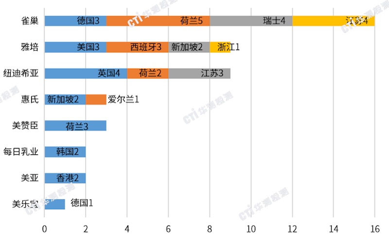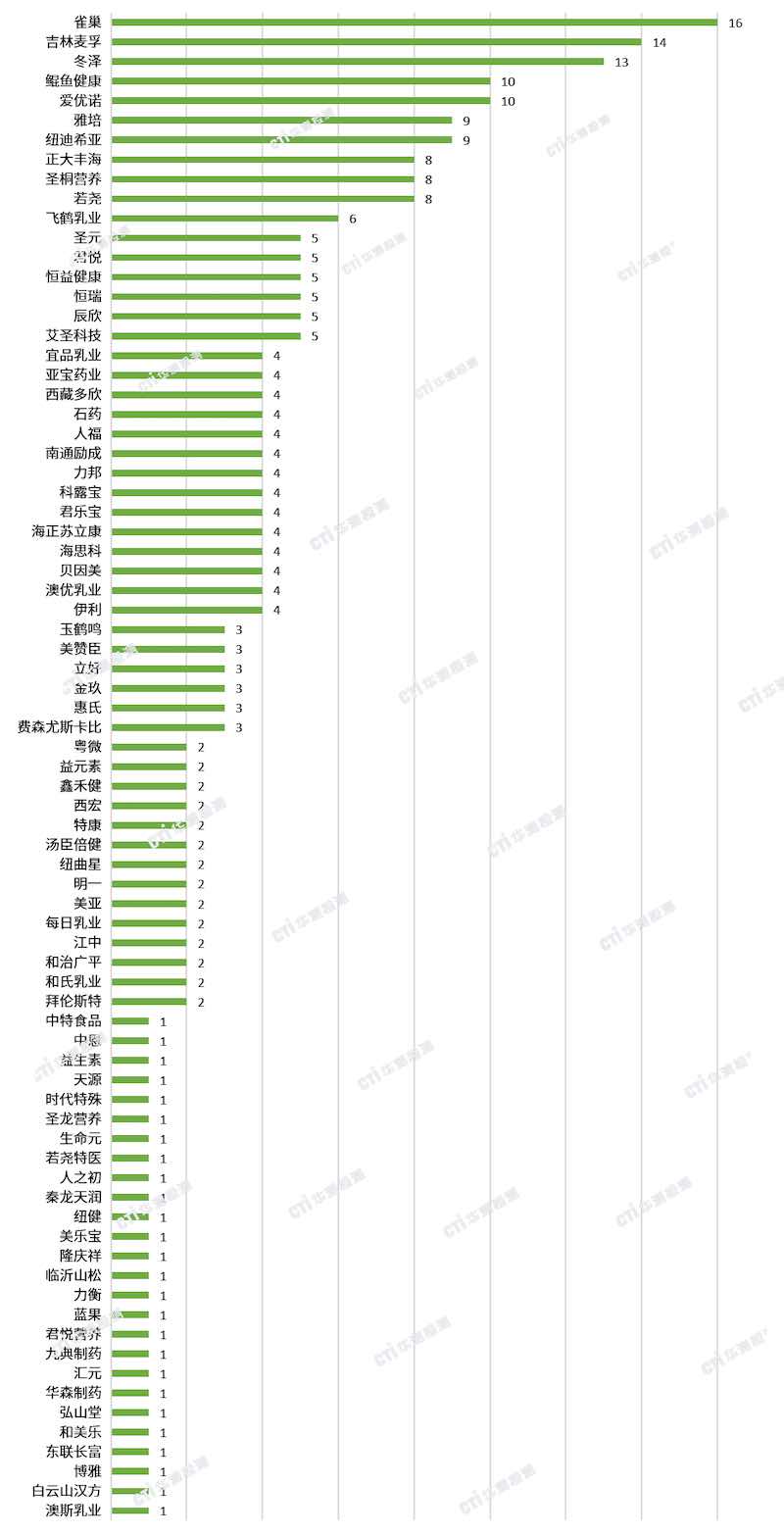 圖5.各企業(yè)特醫(yī)食品注冊數(shù)量統(tǒng)計