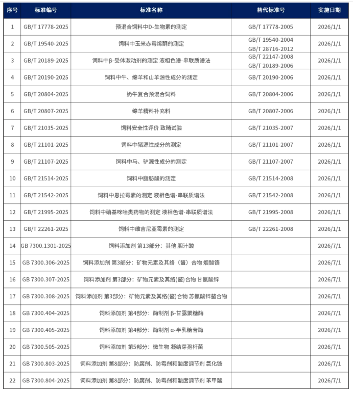 其中,涉及飼料領(lǐng)域國家標(biāo)準(zhǔn)22個,涵蓋:飼料及飼料添加劑。