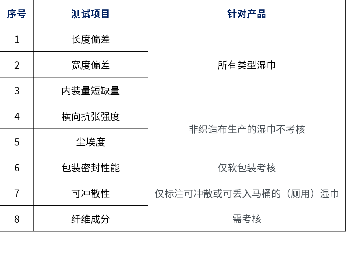 三、新版濕巾標(biāo)準(zhǔn)具體測試項目
