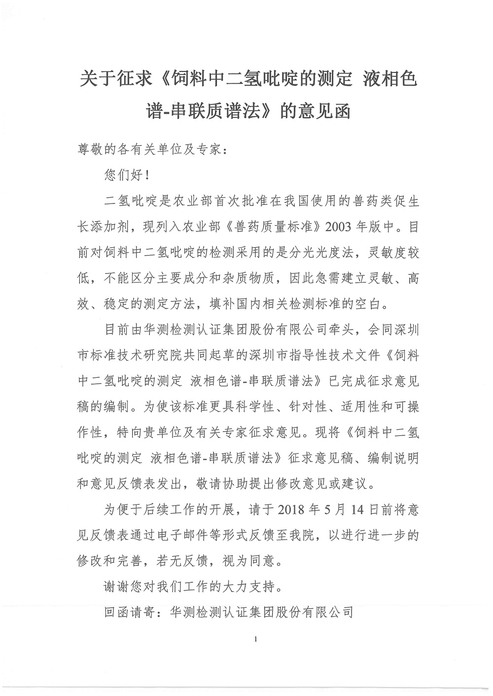 1.《飼料中二氫吡啶的測(cè)定 液相色譜-串聯(lián)質(zhì)譜法》征求意見(jiàn)稿