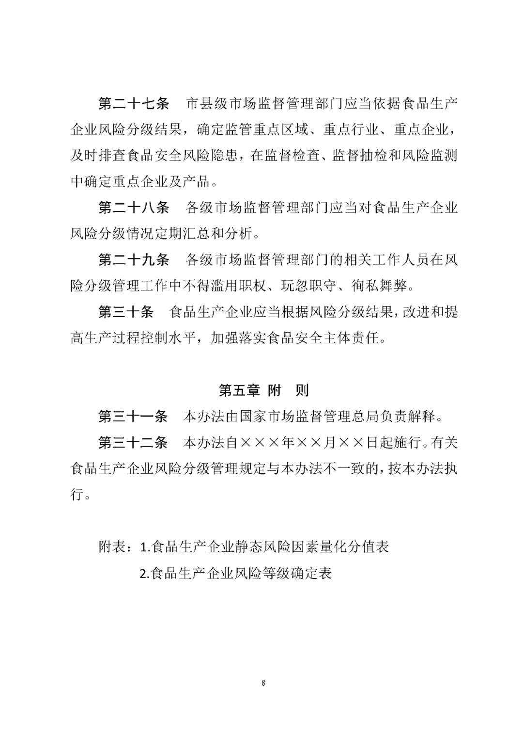 為推進食品生產企業(yè)食品安全風險分級與信用風險分類管理,優(yōu)化監(jiān)管資源配置,提升監(jiān)管效能,市場監(jiān)管總局起草了《食品生產企業(yè)風險分級管理辦法(征求意見稿)》,現(xiàn)向社會公開征求意見。公眾可通過以下途徑和方式提出意見: