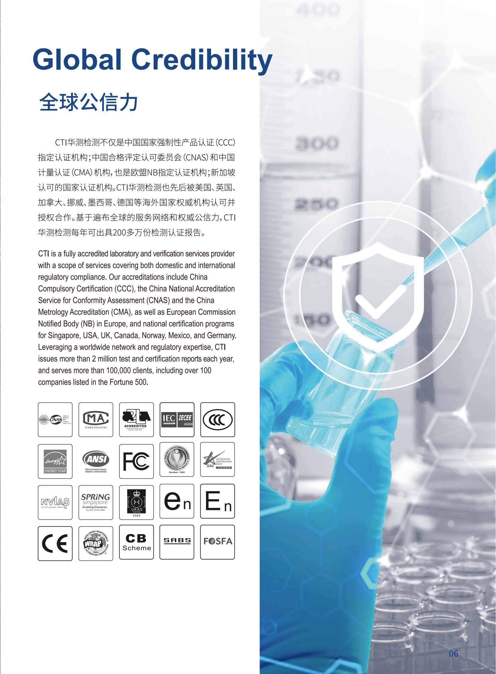 作為中國第三方檢測與認證服務(wù)的開拓者和領(lǐng)先者,CTI華測檢測為全球客戶提供一站式檢驗、測試、校準、認證及技術(shù)服務(wù)。